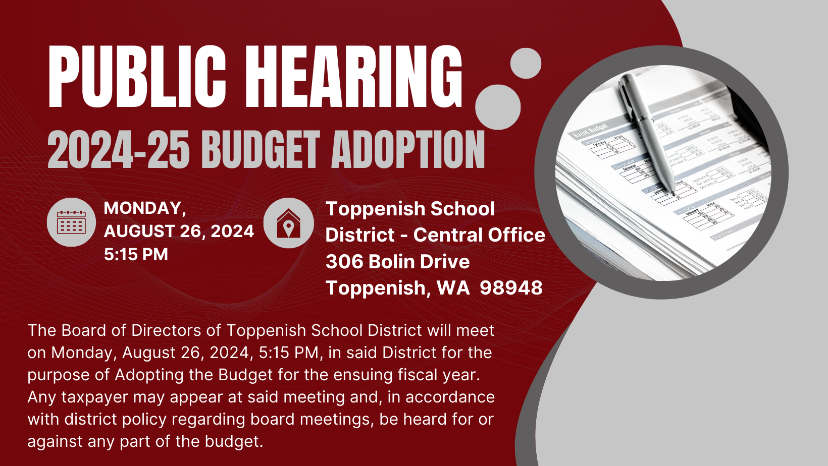 TSD Public Hearing: 2024-25 Budget Adoption @ 5:15 PM